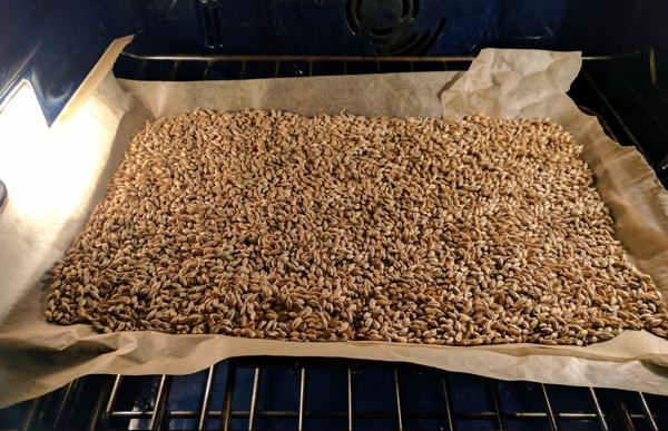 - Finally, I kilned (roasted) the grain at 180F for about 4 hours, to develop a reasonable flavor for beer (this is roughly a “pale malt”– different kilning schedules and moistures could produce different malts).